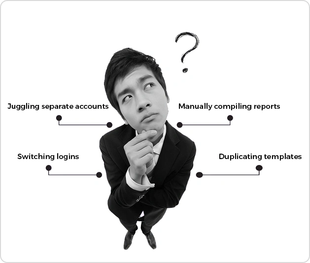 Using a standard email marketing tool often means juggling separate accounts, switching logins, duplicating templates, and manually compiling reports for clients.